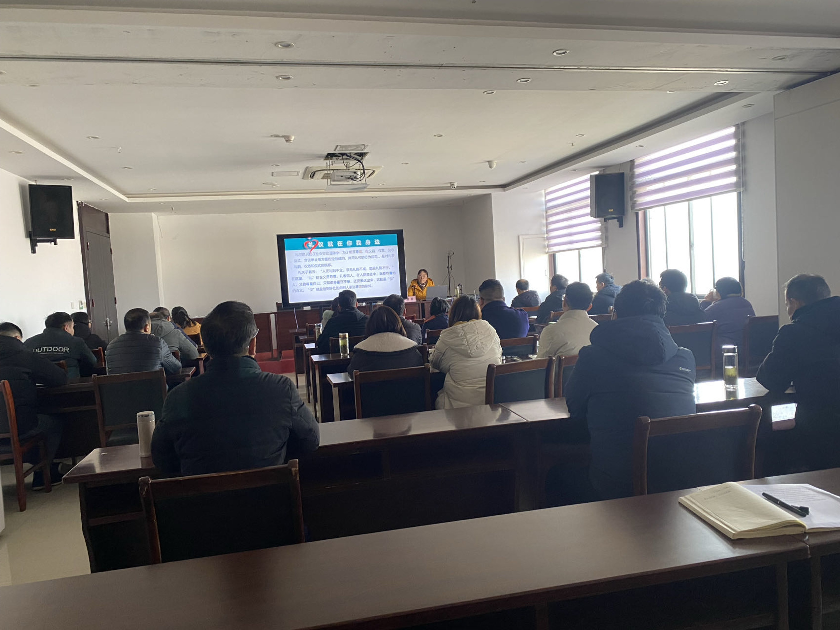 培训会上,曹老师从服务礼仪的形象塑造、日常举止、语言表达、微笑服务等方面,作了深入浅出的讲解,并配以典型事例,提醒大家在日常生活和工作中需要注意的细节,展示了现代礼仪的重要性。老师对公务礼仪所作的生动演绎及介绍,不时赢得了大家的掌声,极大的提升了大家对文明礼仪的学习热情和积极性。