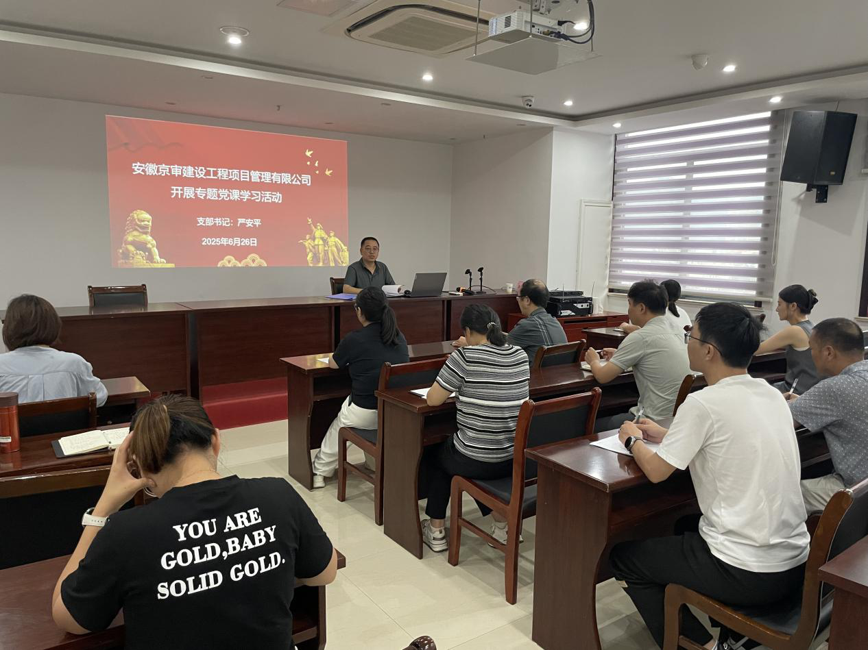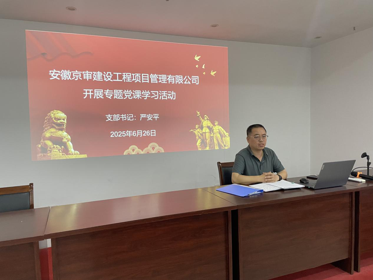 为深入学习贯彻党的精神,激励全员在新征程中担当作为,安徽京审建设工程项目管理有限公司党支部于2025年6月26日开展专题党课。公司党支部书记严安平以“铭记奋斗历程,汲取前行力量,奋力谱写高质量发展新篇章”为题,为全体党员及职工授课。